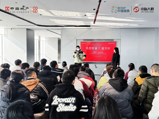 活動中講解員在中海大廈一樓大廳向學生們詳細介紹中海商務安全、高效、溫暖的運營服務標準,并逐一講解安管、前臺、工程、保潔等各職能團隊的日常工作內容。通過實地觀察,學生們深入理解樓宇運營團隊如何通過明確分工與緊密協作,共同保障整棟大廈的安全、有序運行。隨后,學生們前往樓內代表企業,深入企業辦公場景,近距離了解企業的基本運作以及不同崗位員工的日常工作內容。