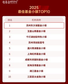 近日,母基金研究中心發布2025年度榜單,其中,金雞湖商務區“聚寶盆”東沙湖基金小鎮榮登“2025最佳基金小鎮TOP10”榜首。