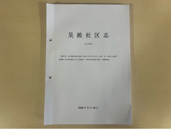 《吳淞社區志》于2022年底啟動編纂,2025年11月完成終審稿。是園區街道社區志文化編纂工程開展以來第2部終審的社區志。《吳淞社區志》上不設限,下限至2023年,共13章49節16萬字。