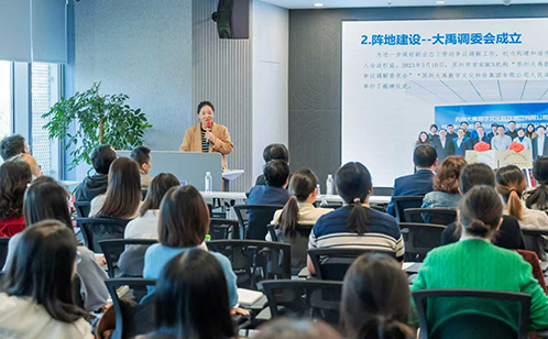 活動特邀省級金牌調解組織蘇州大禹數字文化科技集團有限公司勞動爭議調解委員會副主任浦麗莎作“優秀調解組織經驗推介”,結合實踐講述調解組織在建設運作及高效化解勞動爭議方面的有效做法。