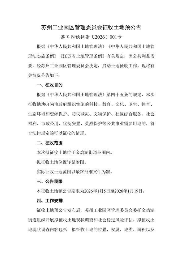 蘇工園預(yù)征告〔2026〕001號(hào)--征收土地預(yù)公告