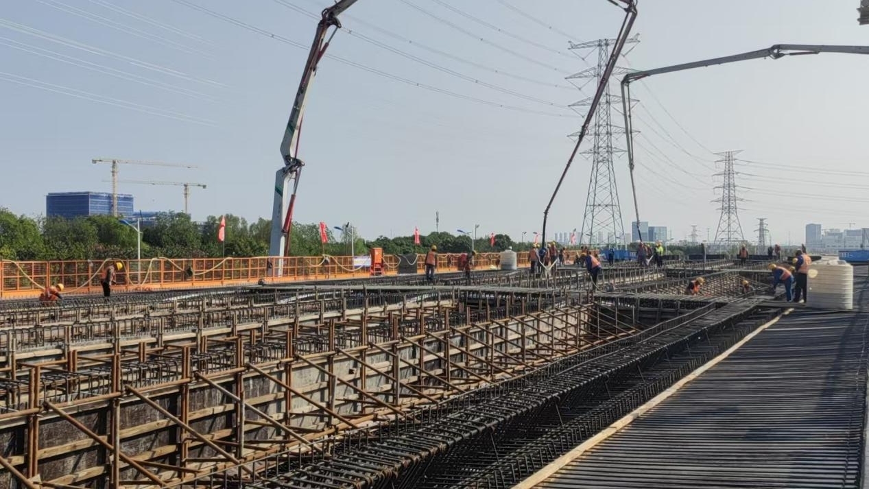 自2024年12月24日開工以來,參建各方共同努力,克服綠化遷移數量多、管線遷改難度大、交叉作業風險高等困難,統籌謀劃在先,利用BIM技術優化設計,應用標準化手冊指導施工,圓滿完成保通道路通車、110kV姚凌線入地等關鍵節點目標。此次主線現澆箱梁的混凝土澆筑,吹響了高架橋上部結構施工“集結號”,向項目2027年10月竣工通車目標又邁出了重要一步。