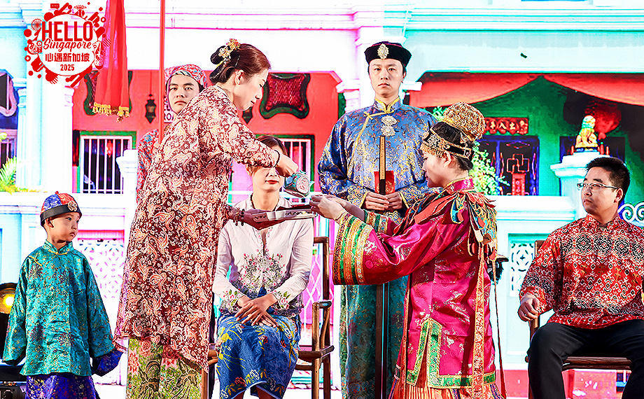 當(dāng)晚,一場別具風(fēng)情的新加坡娘惹傳統(tǒng)婚禮秀將氣氛推向高潮,傳統(tǒng)儀式與現(xiàn)代演繹完美融合,引得觀眾連連稱贊。活動期間還將輪番上演小印度歌舞、馬來歌舞及中國傳統(tǒng)歌舞演出,通過中新文化在舞臺上交流碰撞,讓市民在互動中更深入地感悟新加坡文化魅力。