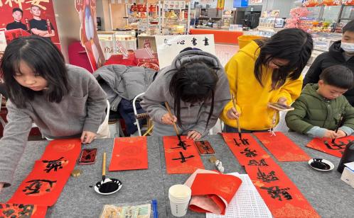 2月1日の午後、貴都コミュニティは10數(shù)名の青少年ボランティアを組織し、コミュニティ內(nèi)の盒馬店舗を訪れ、その場(chǎng)で春聯(lián)や「福」の字を書き、行き交う客や配達(dá)員、清掃作業(yè)員などに贈(zèng)り、コミュニティの溫かみを伝えた。