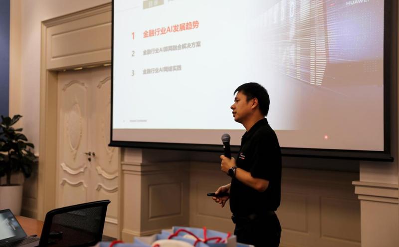 活動(dòng)現(xiàn)場,華為江蘇政企數(shù)通解決方案銷售部部長蔡國棟在致辭中表達(dá)了AI技術(shù)在金融行業(yè)中的重要性以及推動(dòng)行業(yè)智能化轉(zhuǎn)型的必要性。