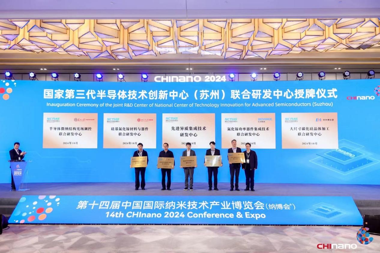 10月23日,第十四屆中國國際納米技術產業博覽會在蘇州工業園區開幕。開幕式上,國家第三代半導體技術創新中心(蘇州)重大成果發布、國家第三代半導體技術創新中心(蘇州)聯合研發中心授牌、一批高質量項目現場簽約。