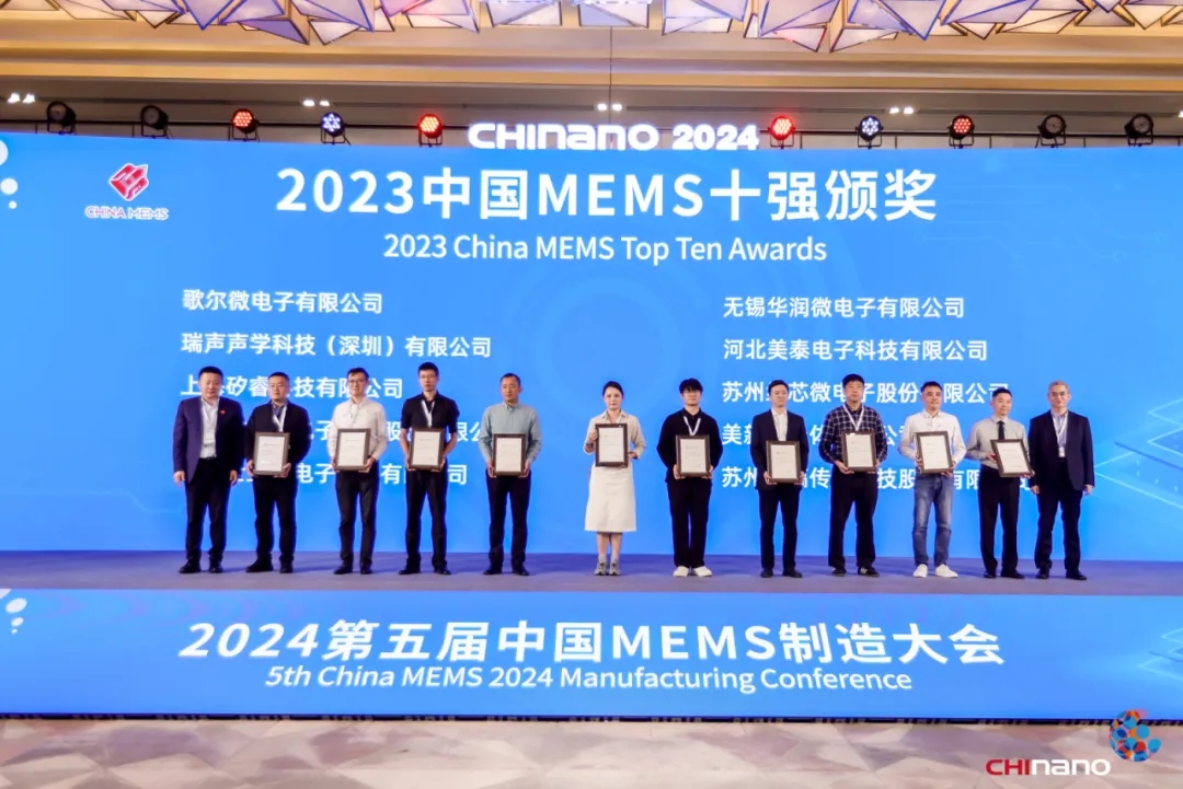 現場隆重舉行“2023年中國MEMS十強企業”頒獎儀式,其中蘇州納芯微電子股份有限公司、蘇州敏芯微電子技術股份有限公司、蘇州明皜傳感科技股份有限公司三家蘇州工業園區企業入選。