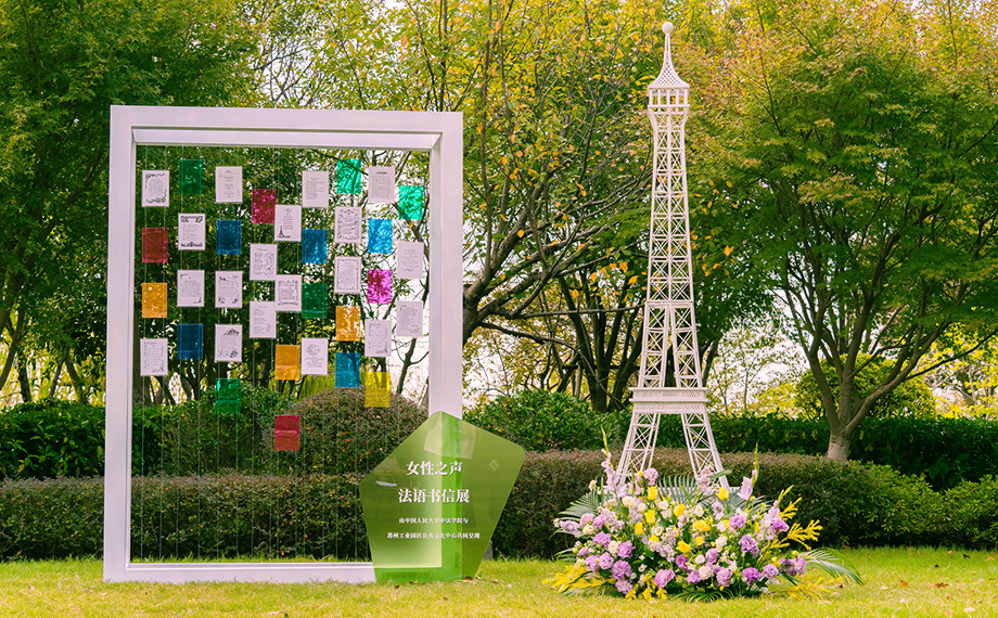 展覽區里,園區公共文化中心與中國人民大學中法學院攜手打造的“女性之聲”法語書信微展,用書法美學重構法語語言魅力,將文字升華為視覺藝術,呈現了別具韻律的線條之美。