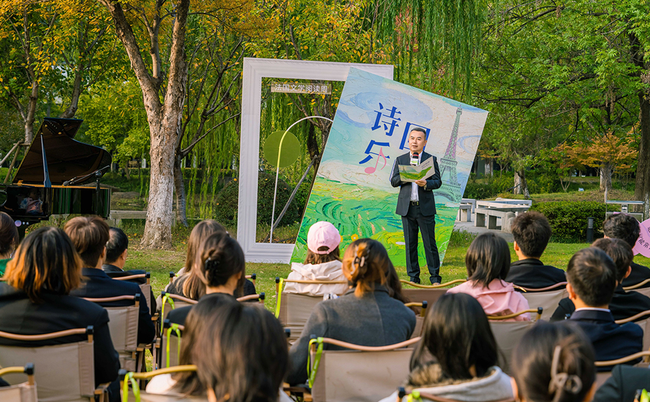 獨墅湖畔的戶外草坪上,一場融合文學、音樂、舞蹈、展覽等多重元素,集文化感知、藝術共創、社交互動于一體的“詩樂回響”湖畔朗誦會,吸引了高校師生、文藝愛好者及市民游客相繼而至。