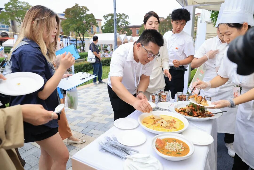 除了廣受市民游客青睞的“蟹味美學(xué)”展示菜區(qū)域,河對(duì)岸的“澄心至味”品鑒菜區(qū)域更是一片熱鬧非凡的景象。