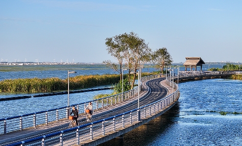 而在陽澄湖,乘“風”破“浪”還需一輛自行車的陪伴。作為國家級旅游度假區,陽澄湖半島以“體育+旅游”創新融合發展路徑,打造環湖騎行、生態休閑等特色體驗。全長50公里的環湖自行車道依水而建,串聯仙櫻湖公園、重元寺、比斯特購物村等景點,呈現自然生態與現代人文有機融合的和諧畫卷。當前“滿澄盡啖黃金甲”系列活動持續火熱,市民游客環湖騎行,不僅能飽覽秋日勝景,還能一嘗陽澄湖大閘蟹的時令美味。