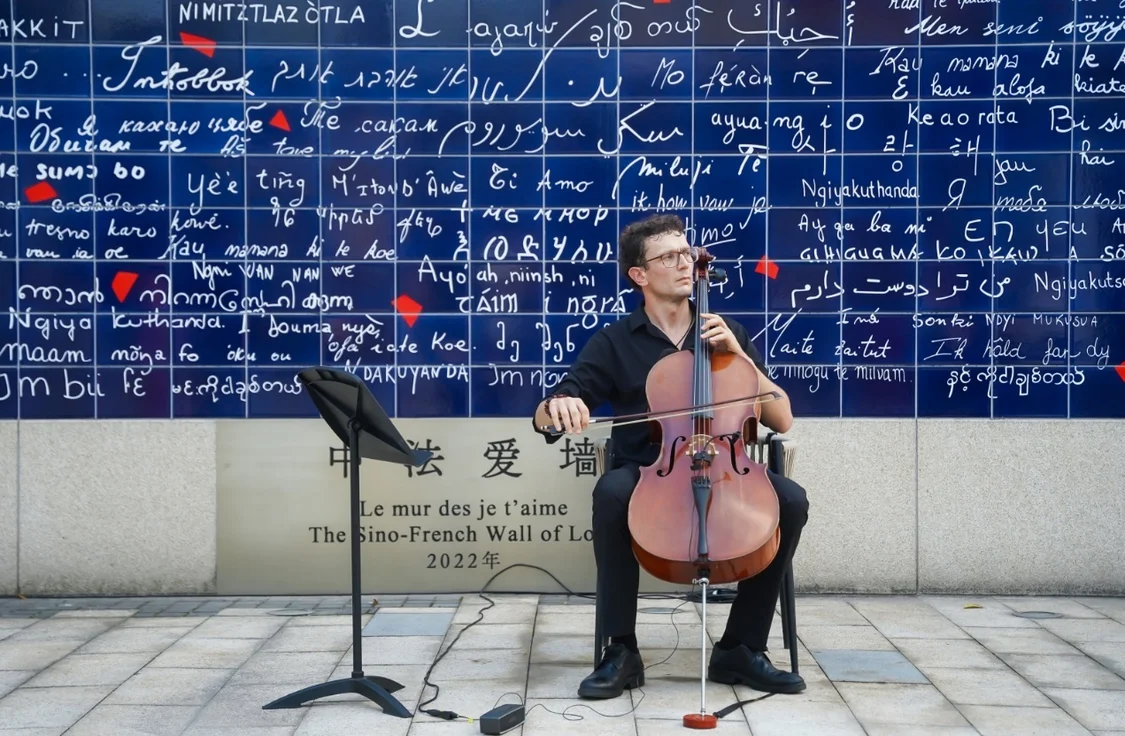 圖說:藝術家在中法愛墻前表演(蘇州工業園區供圖)
