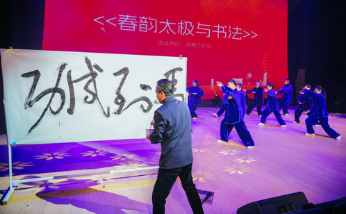 整場演出圍繞“錦繡河山·盛世歡歌”“雅韻流芳·吳儂傳情”“華彩律動·時代風(fēng)采”“初心綻放·幸?;仨憽彼拇笾黝}徐徐展開。從《五星紅旗》的舞動盛世到《次真拉姆》的江南風(fēng)韻,從《祖國的好江南》的歌聲禮贊到滬劇評彈的吳儂婉轉(zhuǎn),舞臺流轉(zhuǎn)間盡展斜塘文脈的深厚底蘊。隨后,《快樂秀》走出時代風(fēng)采,《春韻太極與書法》剛?cè)嵯酀?jì),《懷鄉(xiāng)曲》寄托家國深情,最后《我愛你中國》將情感推向高潮,鋪展出一幅傳統(tǒng)與現(xiàn)代交融的文化長卷。
