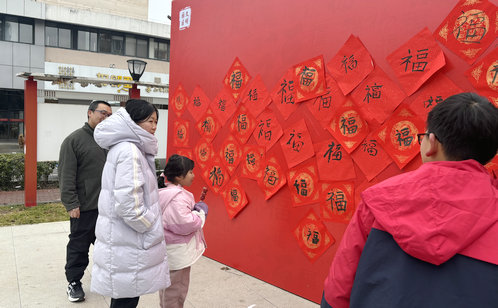 廣場一側(cè),一面巨大的簽到墻等待著居民們書寫新年的憧憬。紅色的墻面上,金色的字熠熠生輝,仿佛在向每一位到來的居民傳遞著新春的祝福。居民們有序地來到簽到墻前,拿起筆,在墻上鄭重地寫下自己的新年祝福。有的寫下對家人健康平安的期許,有的表達對社區(qū)發(fā)展的美好祝愿,還有的寄語祖國繁榮昌盛……每一筆每一劃,都飽含著對未來的憧憬與希望。簽到完成后,居民們領(lǐng)取了新年集福打卡券,開啟新春歡樂之旅。