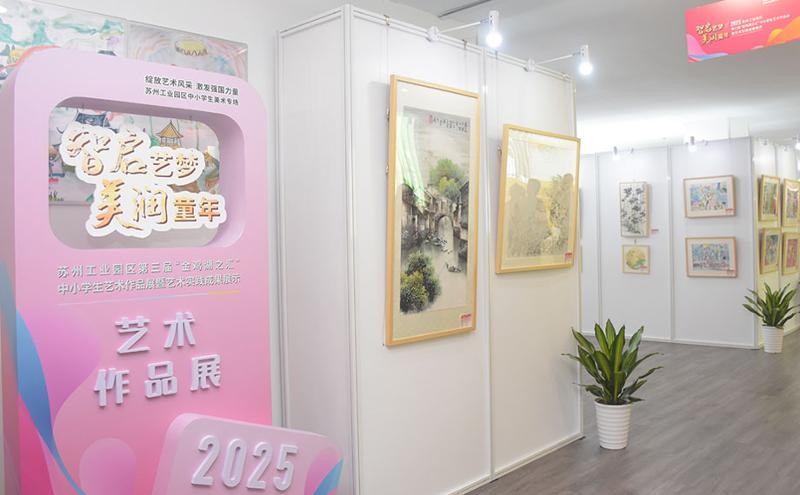 當(dāng)天,2025蘇州工業(yè)園區(qū)第三屆“金雞湖之匯”中小學(xué)生藝術(shù)作品展暨藝術(shù)實(shí)踐成果展同時(shí)揭幕。展覽以“智啟藝夢美潤童年”為主題,通過學(xué)生藝術(shù)作品、學(xué)生現(xiàn)場藝術(shù)創(chuàng)作、學(xué)校藝術(shù)實(shí)踐成果3大展區(qū),全面展示了園區(qū)“傳統(tǒng)筑基、科技賦能、跨界融合”的向時(shí)代美育特色。