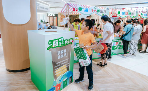 趣味游戲區的創意設計亮點頻出。居民們手持打卡地圖,穿梭于“垃分視力”“分類大轉盤”“綠色補給站”等八大互動點位,通過趣味測試、知識問答、投擲游戲等方式邊玩邊學。“‘瓶’什么都給我”專區人氣爆棚,居民王阿姨用積攢的飲料瓶兌換了綠蘿,笑得合不攏嘴。“城投再生”“綠色補給站”和“舊物煥新”專區也深受居民青睞,居民們拎著紙箱、舊衣物排隊兌換環保袋、文具等實用物品,直觀感受到“垃圾是放錯位置的資源”。游戲化體驗不僅提升了垃圾分類知識的趣味性和互動性,更讓居民在輕松愉悅的氛圍中掌握分類技巧、提升環保意識。針對還不太熟悉如何正確分類的居民,志愿者則一對一講解垃圾分類知識,實現寓教于樂“零距離”。此外,志愿者們還同步宣傳倡導“光盤行動”“限塑”“減少使用一次性用品”等源頭減量、簡約適度的生活方式。