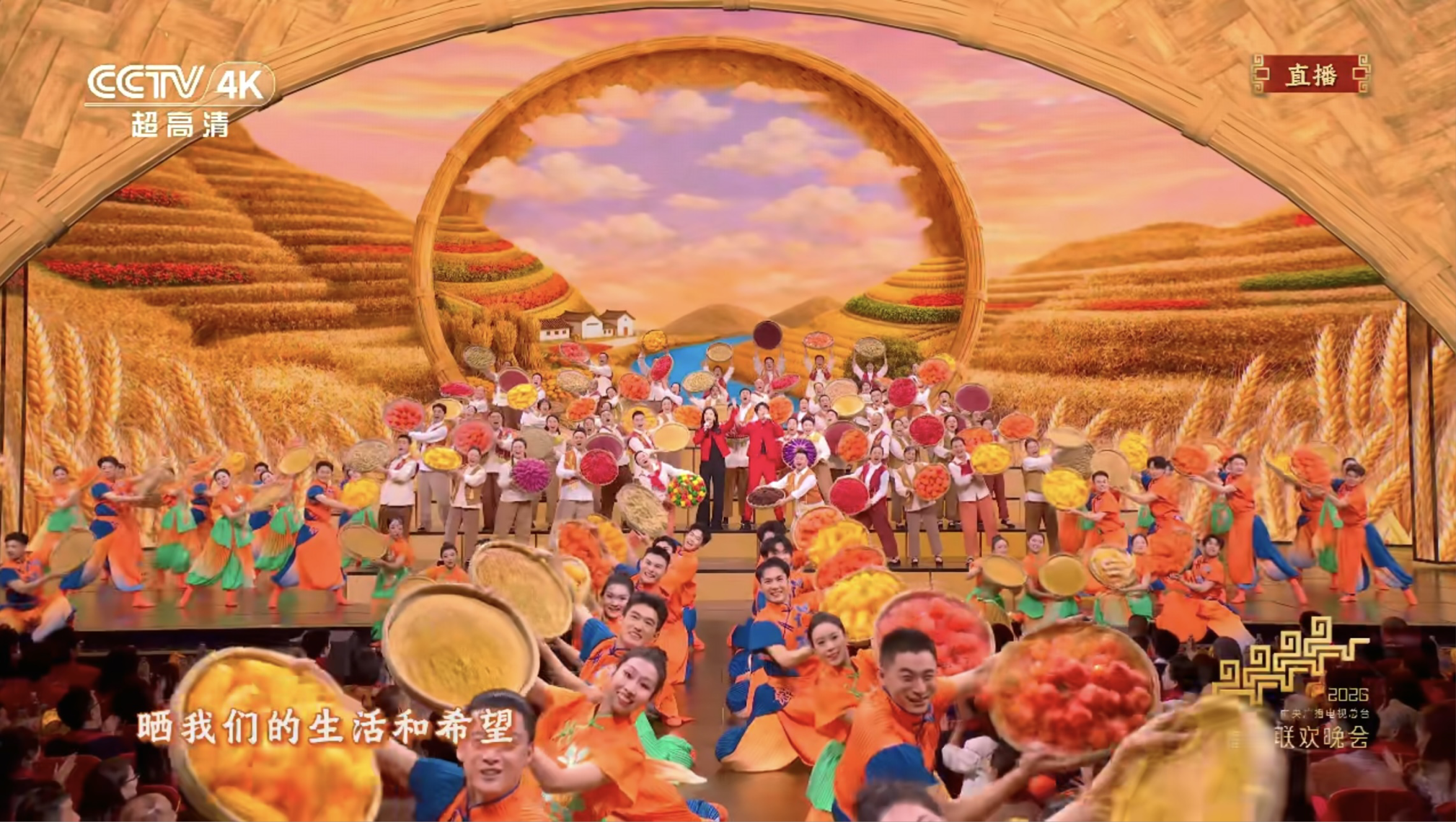 在北京主會場《來曬秋》節(jié)目中,農(nóng)民合唱團(tuán)帶著豐收的喜悅登上春晚舞臺,沉甸甸的笸籮、金黃的稻穗、火紅的辣椒繪就秋收好“豐”景,質(zhì)樸歌聲與濃濃年味打動(dòng)人心。晚會以真摯情懷歌頌時(shí)代發(fā)展、唱響人民幸福生活,背后是導(dǎo)演組在節(jié)目編排、舞臺呈現(xiàn)、技術(shù)融合上的精益求精,全力打造一臺貼近生活、溫暖人心的“人民的春晚”。