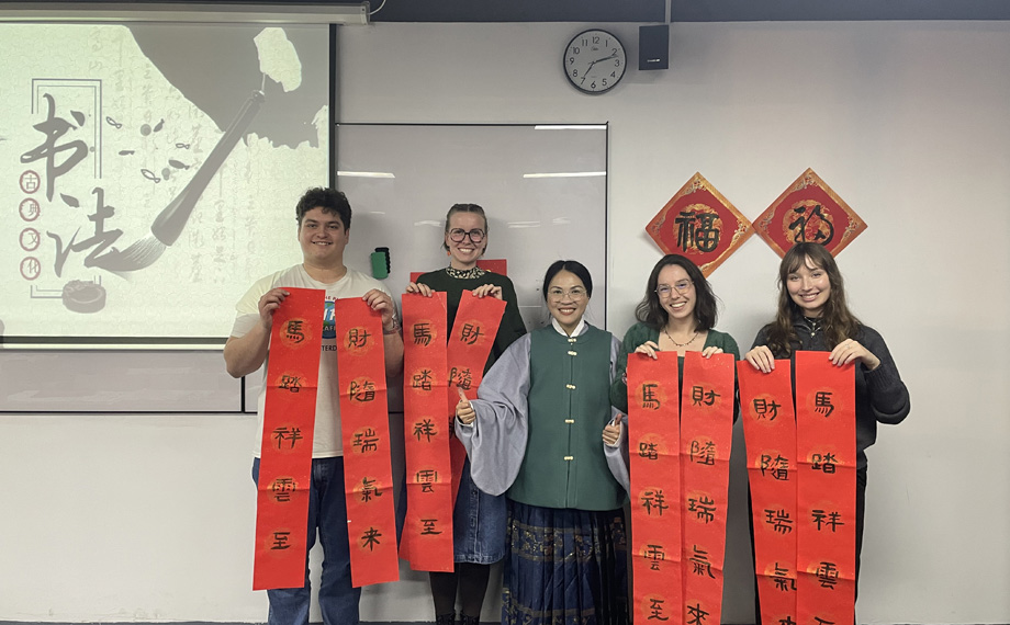 除了美食與游戲,文化體驗(yàn)同樣不可或缺。春節(jié)前,SKEMA商學(xué)院還組織了多場(chǎng)書法體驗(yàn)活動(dòng),寫春聯(lián)、寫福字備受歡迎。在墨香縈繞的教室里,外籍學(xué)子們從執(zhí)筆姿勢(shì)學(xué)起,一點(diǎn)一橫、一撇一捺地模仿漢字的結(jié)構(gòu)與神韻。紅紙鋪開,一個(gè)個(gè)真誠的“福”字、一幅幅寓意吉祥的春聯(lián)陸續(xù)誕生。學(xué)生們興奮地與作品合影,感受著中國人以筆墨寄托對(duì)新春美好期盼的獨(dú)特傳統(tǒng)。