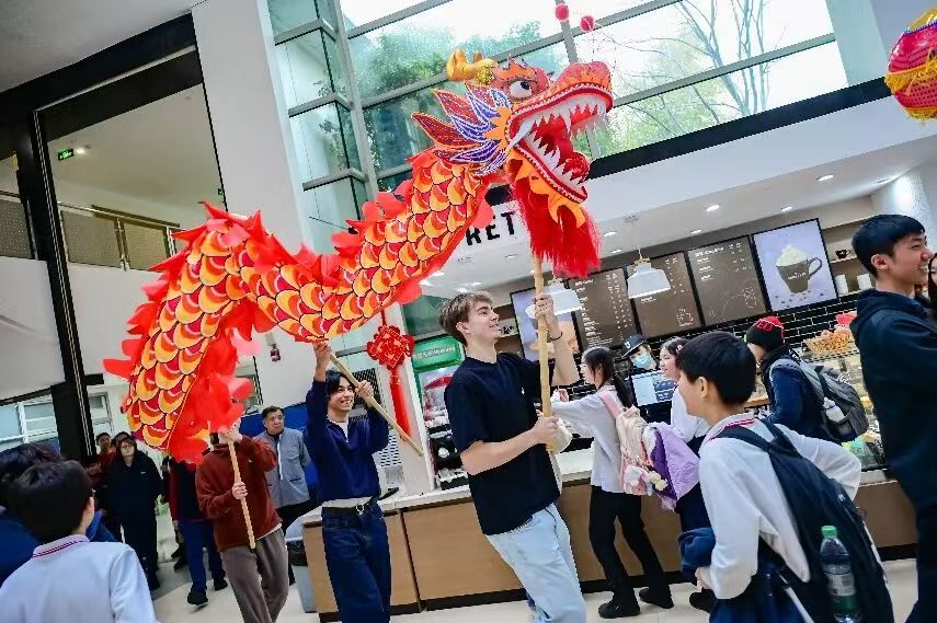 事實(shí)上,SSIS的新春慶祝遠(yuǎn)不止一場(chǎng)音樂會(huì),學(xué)校還打造了精彩的集會(huì)和沉浸式體驗(yàn)活動(dòng),各學(xué)部也開展了豐富多彩的新年主題活動(dòng):幼兒園游園會(huì)上,金發(fā)碧眼的小朋友剪起了窗花;小學(xué)部集會(huì)中,孩子們分享了各自對(duì)春節(jié)的理解;中學(xué)部主題活動(dòng)中,舞龍舞獅、寫福字成為最受歡迎的環(huán)節(jié)。校園的每一處都被中國紅妝點(diǎn),每一張臉上都映照著節(jié)日的暖光。