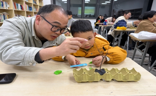 “大樹會說什么悄悄話呢?”隨著老師的提問,孩子們睜大好奇的眼睛,在繪本的世界里尋找答案。生動的畫面、趣味的講解,讓孩子們了解到樹木不僅是小鳥的家園,更是地球的“綠色衛(wèi)士”。隨后的手工環(huán)節(jié)將活動推向高潮——在家長的陪伴下,孩子們用五顏六色的粘土揉搓、按壓、拼接,不一會兒,一棵棵充滿童趣的小樹便在掌心“生長”起來。