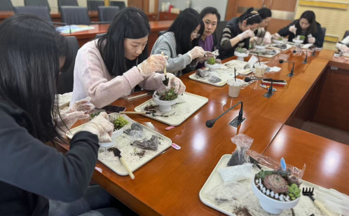 梅花社區新時代文明實踐站聯合街道就業公司組織開展的多肉種植主題活動,吸引了不少居民前來體驗。社區活動室里,木質種植盒、形態各異的多肉幼苗、營養土、鋪面石等工具材料一應俱全。居民們先將營養土均勻填入盒中,輕輕撫平,再小心翼翼地挑選心儀的多肉組合,用小鏟子刨坑移栽,調整好疏密與高低,最后鋪上圓潤的鋪面石進行點綴。不一會兒,一盆盆錯落有致的多肉微景觀便呈現在眼前。此次活動拉近了鄰里的距離,讓綠色成為連接情感的紐帶。