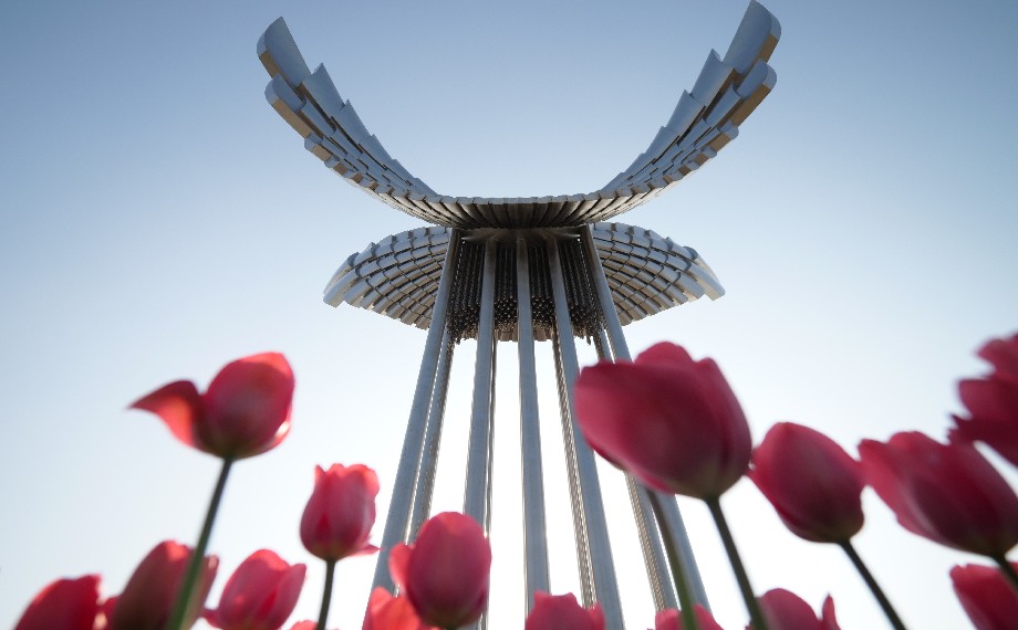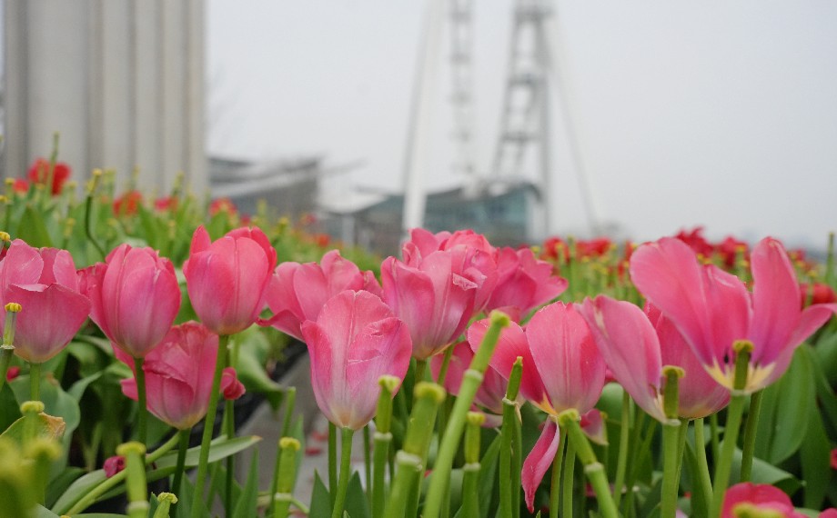 春色醉人,金雞湖飛翔雕塑下,一片絢爛的郁金香花海成為園區春日里一抹亮眼的色彩。各色郁金香亭亭玉立,與上空的飛翔之翼雕塑遙相呼應,自然景致與人文藝術完美交融。俯身輕嗅花香,仰首與雕塑合影,隨手一拍便是春日限定美景,盡顯園區春日的鮮活與靈動。