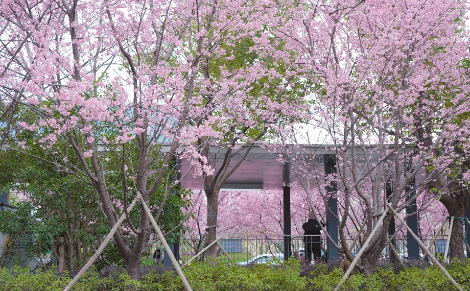 園區的早櫻已悄然出圈,成為春日里最亮眼的“多巴胺擔當”,刷屏社交平臺,引得不少游客奔赴打卡,共赴這場粉色浪漫。