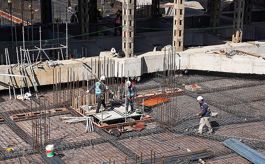 沿著深達十余米的基坑向下望去,工人們正緊張地進行鋼筋綁扎、模板安裝等工作。恒泰城發工程開發部副總監宋劍波指著施工現場介紹:“今年,蘇州東站樞紐項目七大地塊將全面開工。作為項目核心且面積最大的A、B地塊,目前正有序完成負三層頂板施工,計劃在5月底完成A、B區一批次基坑地下結構出正負零,這也將是項目建設重要的里程碑。4月底,我們還將同步推進二批次基坑的開挖工作。”