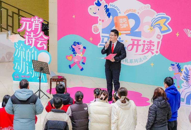 在園區圖書館,詩意與書香撞個滿懷。“朗誦快閃”以童聲開場、經典對誦接續,《又見元宵節》《故鄉的元宵》等篇目聲聲入耳;“閱游書圈迎新年”燈謎書友會同步開展,將文學常識、典籍典故融入謎題,讓市民樂享文墨之趣;蘇州知名漫畫家阿濤百幅馬年主題幽默漫畫亮相,諧音巧思、妙解成語,為讀者帶來輕松愉悅的閱讀體驗。