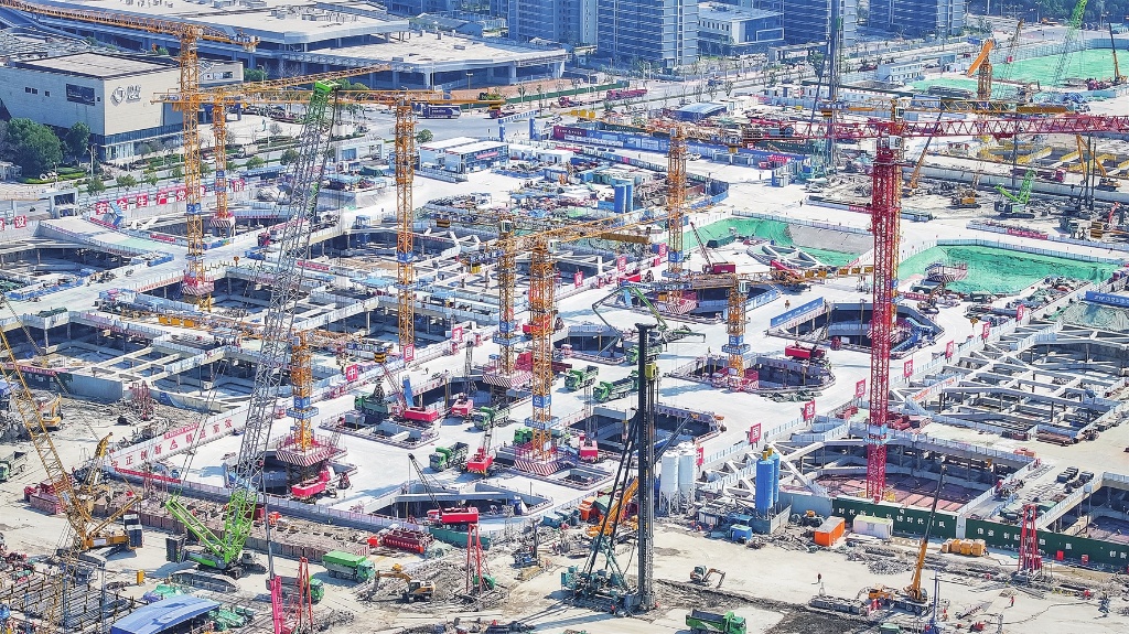 位于園區(qū)吳淞灣未來城的蘇州東站采用地下站建設(shè)模式,是通蘇嘉甬高鐵重要樞紐站點。圖為昨天航拍的建設(shè)現(xiàn)場。