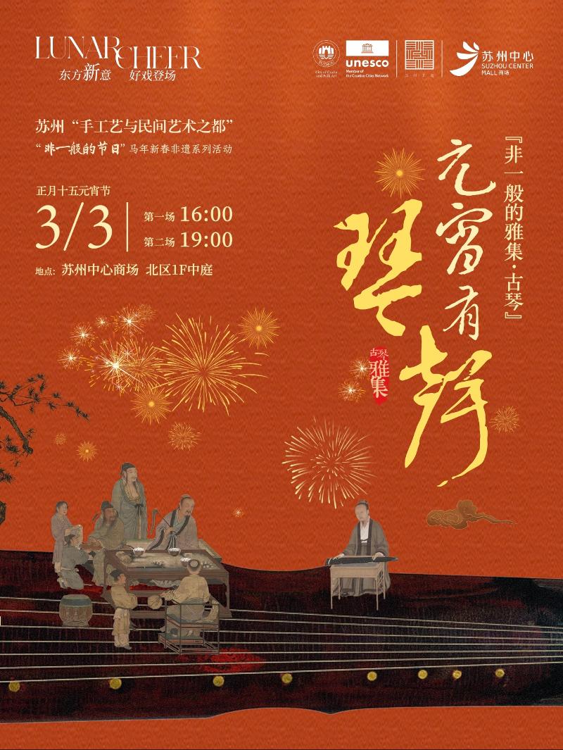 3月3日,蘇州中心商場(chǎng)北區(qū)一樓中庭將舉辦“非一般的雅集?古琴”專(zhuān)場(chǎng)。指尖輕撥,清音流轉(zhuǎn),邀市民與游客共赴一場(chǎng)滌蕩心靈的聽(tīng)覺(jué)雅集。現(xiàn)場(chǎng)將奏響《賽馬》《梅花三弄》《上春山》等經(jīng)典曲目,共設(shè)兩場(chǎng)演出,分別于16:00、19:00開(kāi)場(chǎng)。元宵佳節(jié),不妨移步蘇州中心,聽(tīng)一曲清音入耳,共賞雅韻。