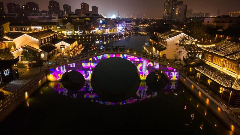 即日起至3月31日,每晚18:00-21:00,斜塘老街新春光影秀準(zhǔn)時(shí)開(kāi)啟,攬?jiān)聵蚺稀按簡(jiǎn)⑿鲁?,流光織?mèng)”;懷夢(mèng)街內(nèi)“踏步生花,隨行綻焰”,沉浸式感受夢(mèng)幻浪漫的元宵夜景。