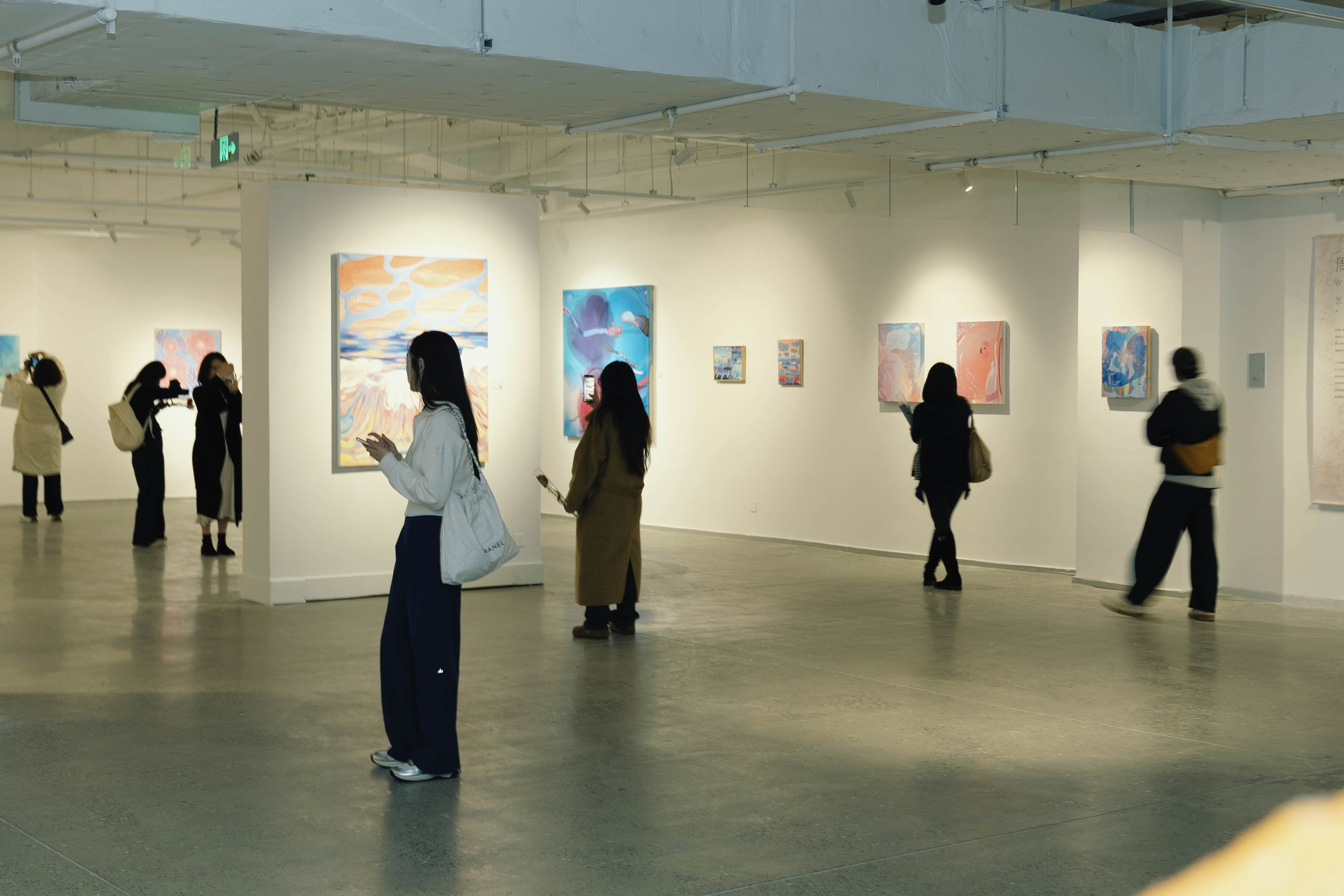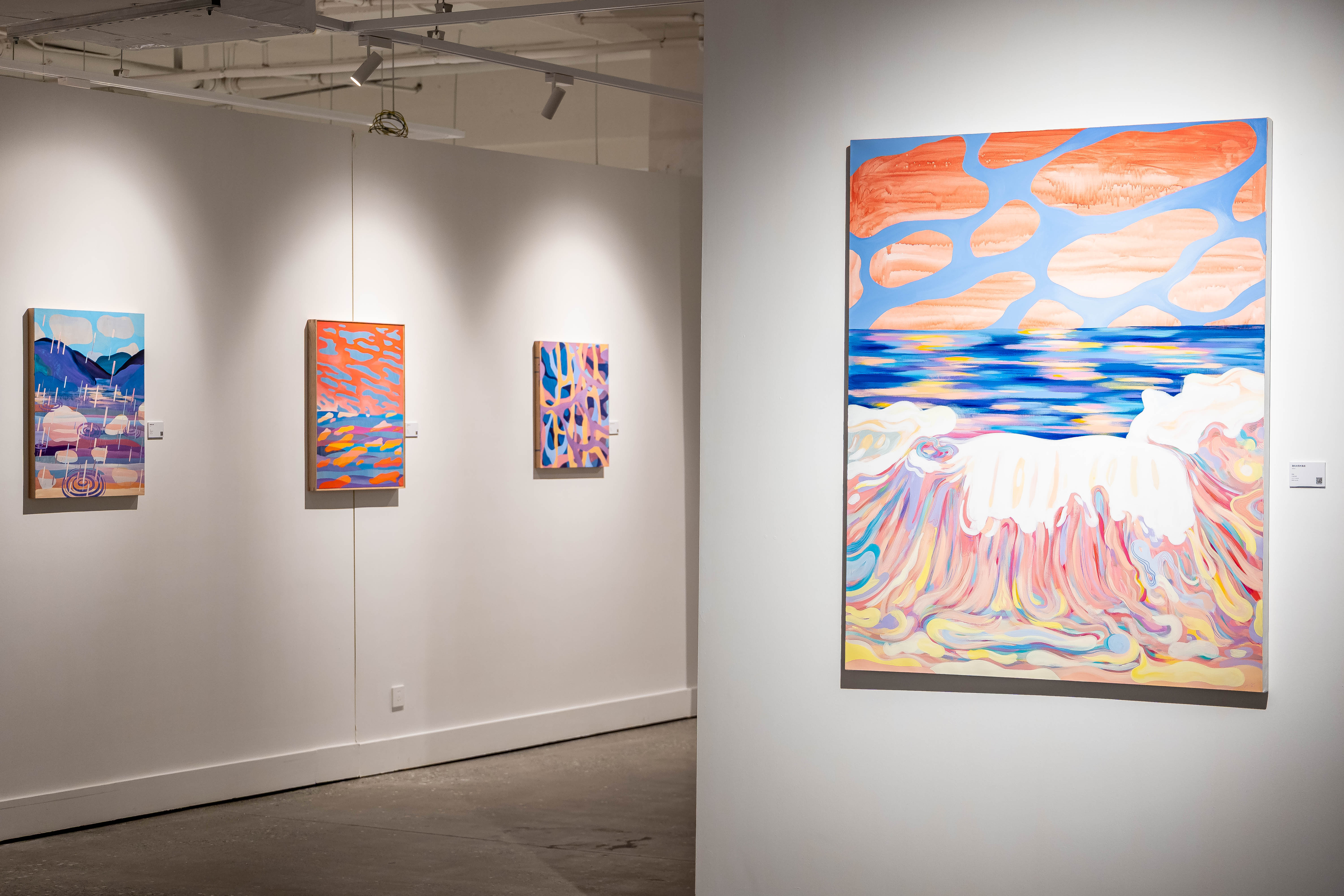 譚坤的創作摒棄了對現實的復刻,以王爾德童話為創作靈感,憑借極具張力的色彩堆疊、細膩的符號編碼與富有敘事感的筆觸,將虛幻的精神投射與自然的生命秩序巧妙并置,悄然叩問“真實與虛構的邊界”這一深刻命題。觀者漫步于展廳之中,在色彩與符號的交織碰撞里,得以窺見內心深處的真實自我,完成一場與自我的溫柔對話。從女性自我意識的覺醒,到個體感知的重構;從對固有標簽的解構,到對精神世界的探索,兩場展覽雖各有側重,卻共同傳遞著“尊重差異、擁抱自我”的核心主張。