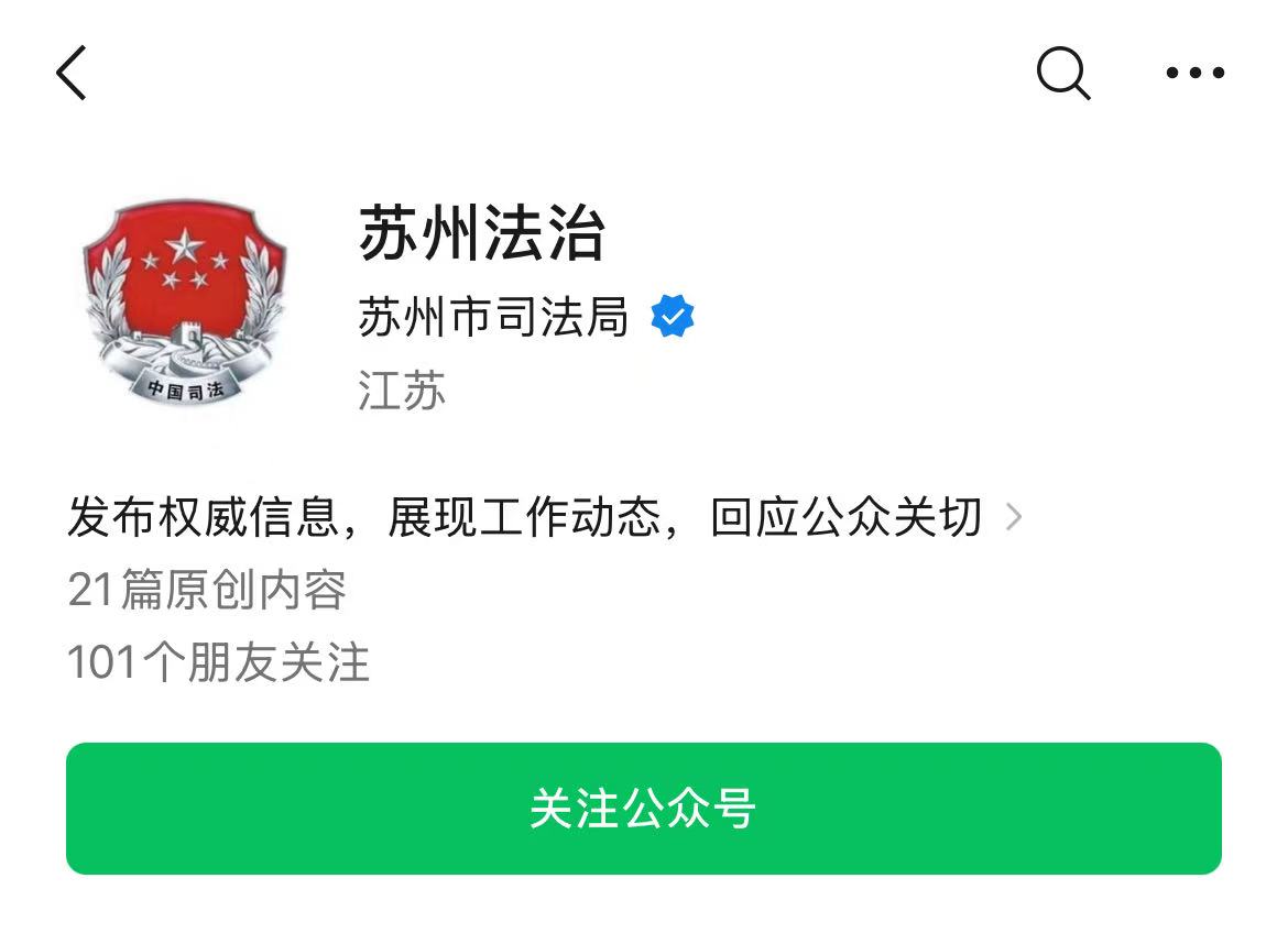 第一步:微信搜索、關(guān)注“蘇州法治”公眾號