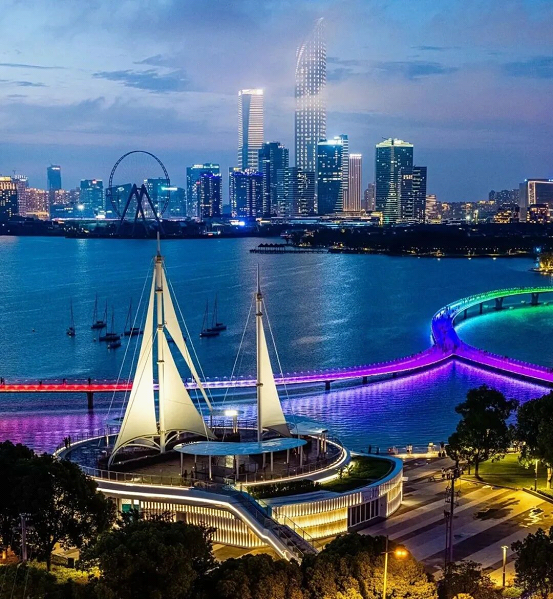 About 100 concerts are scheduled around Jinji Lake, including the weekend concerts under the “Summer Night in SIP” and “Autumn Night in SIP” programs, the “Waterfront Concerts” at Harmony Times Square and Moon Harbor and those at Suzhou Olympic Sports Centre. The Jinji Lake Music Fountain gives fascinating water and light shows.