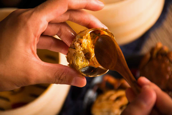 At noon, restaurants at Qianshuiwan Business Street serve the most authentic seasonal flavors, like Yangcheng Lake hairy crabs and other delicacies.
