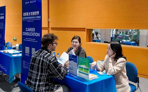 A job fair was held at Xi’an Jiaotong-Liverpool University (XJTLU) in SIP’s Suzhou Dushu Lake Sci-Edu Innovation District on Nov 5, when over 50 employers offered more than 800 job and internship opportunities to foreign students from schools in the district.