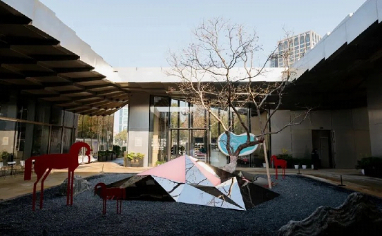 Nearby, at Jinji Station 09, another installation, named “Die Shi Kui Tian”, features a more Eastern aesthetic style. Inspired by rockeries in Suzhou’s classical gardens, its geometric lines reimagine traditional decorative rockery art. Also made of stainless steel, it captures the sky, clouds, architecture and visitors within its angles, folding the world into a miniature “mirror courtyard”. Notably, its colors shift with natural light.