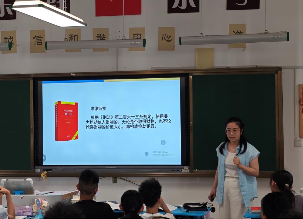 本次活動(dòng)的第一個(gè)環(huán)節(jié)是由“徐福康名師工作坊”成員李磊老師和陳燕秋老師進(jìn)行同題異構(gòu)的課堂教學(xué)展示。西附初中的李磊老師以“嚴(yán)于律己,遠(yuǎn)離違法犯罪”為總議題,圍繞“認(rèn)清危害,增強(qiáng)法治觀念”、“防患未然,杜絕不良行為”、“遵紀(jì)守法,遠(yuǎn)離違法犯罪”三個(gè)子議題展開,讓學(xué)生在案例分析、觀點(diǎn)辨析、情境續(xù)演等活動(dòng)中思考如何遠(yuǎn)離違法犯罪。