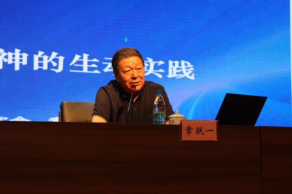 活動最后,江蘇省陶行知研究會常務(wù)副會長兼秘書長章躍一先生給與會老師帶來了一場題為《陶行知教育家精神的生動實踐》的精彩講座。憑借詳實的歷史資料和鮮活的案例,章躍一先生細致地呈現(xiàn)了陶行知先生的教育理念和實踐,并深刻揭示了其中所蘊含的偉大教育家精神。他深入剖析了“陶行知,教育家精神的光輝典范”,讓聽眾仿佛穿越時空,親身感受到陶行知先生對教育事業(yè)的無限熱忱與崇高追求,進而深刻領(lǐng)悟其教育思想的時代價值,以及與當代教育使命的緊密契合。
