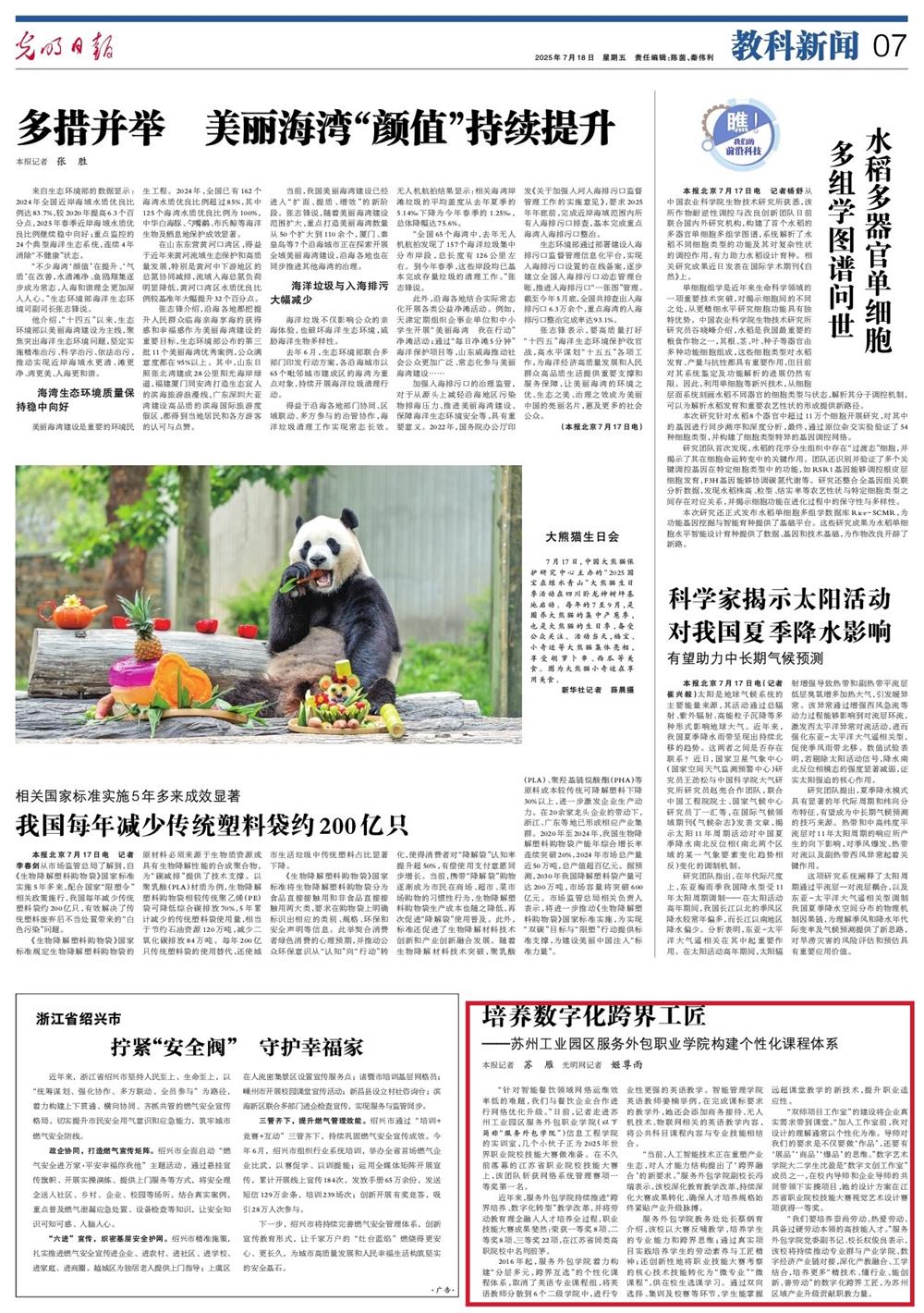 【光明日報】培養(yǎng)數(shù)字化跨界工匠——蘇州工業(yè)園區(qū)服務(wù)外包職業(yè)學(xué)院構(gòu)建個性化課程體系