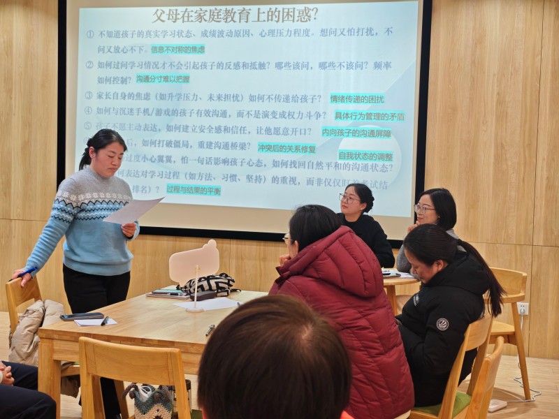 現(xiàn)場氛圍溫馨而熱烈,老師與家長一起結合日常案例,分析高三親子溝通的常見困擾,在互動研討環(huán)節(jié),家長們以小組為單位,圍繞“如何應對孩子的叛逆情緒”“考前如何與孩子溝通”等話題展開熱烈討論,共同探尋親子溝通的金鑰匙: